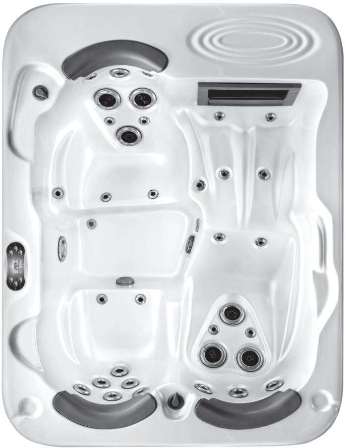 A különleges kialakítású mély masszázsülőkéje intenzíven masszírozza nemcsak a hátat, hanem a fáradt vállakat és a puha fejpárnái pedig hosszú időre is kényelmet adnak. Dupla masszázsszivattyúi kellő intenzítást és kényelmes felhasználást nyújtanak az egész családnak. Pontszerű és erős fúvókák lettek elhelyezve főként a háthoz és a fekvőhelynél pedig a comb tájékára, hogy Ön teljesen el tudjon lazulni